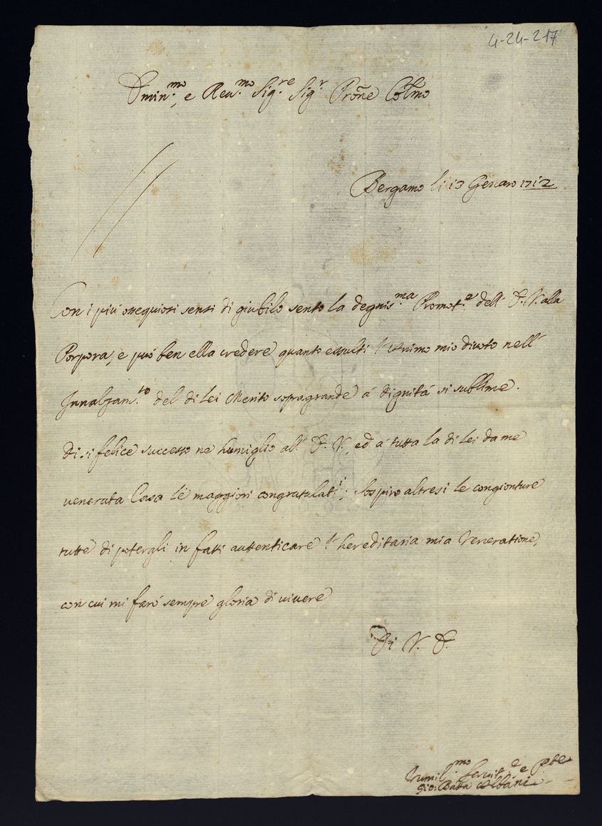 Lettere di congratulazioni per la promozione di sua eccellenza al cardinalato