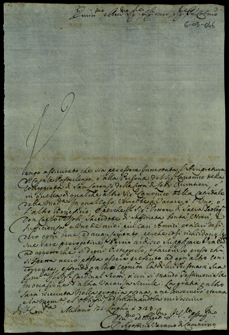 Lettere di complimento e di negozio. 1723. Semestre secondo