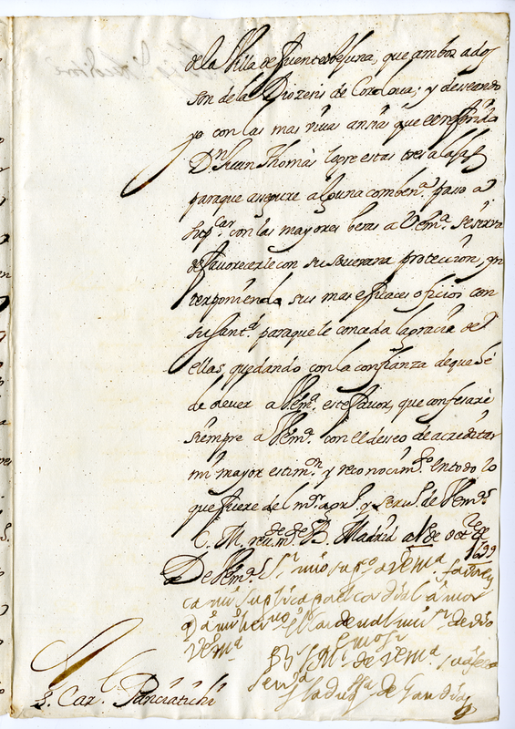 Annuncia la morte del fratello Cardinale Cordoba e propone la elezione di Don Juan Thomas presbitero del vescovado di Cartagena