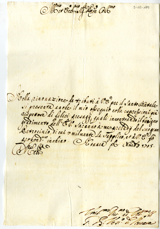 Lettera del vescovo di Novara ad Annibale Albani (1705 dicembre 1)