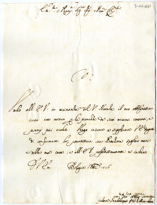 Lettera di Cesare Gambalunga al cardinale Annibale Albani (1716 dicembre)