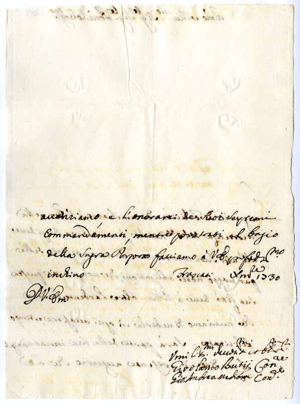 Lettera di Girolamo Buti e Giovanni Andrea Mediante al cardinale Annibale Albani (1730 dicembre)