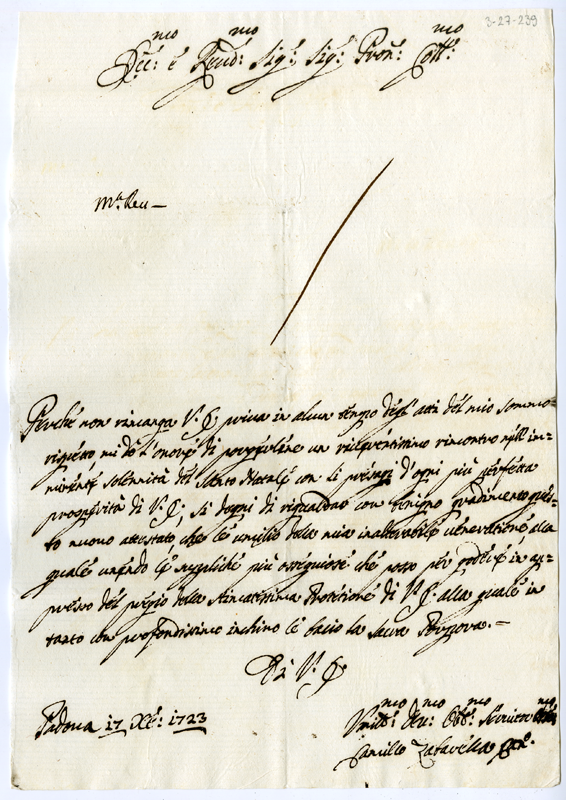 Lettera di Camillo Zabarella al cardinale Annibale Albani (1723 dicembre 17)