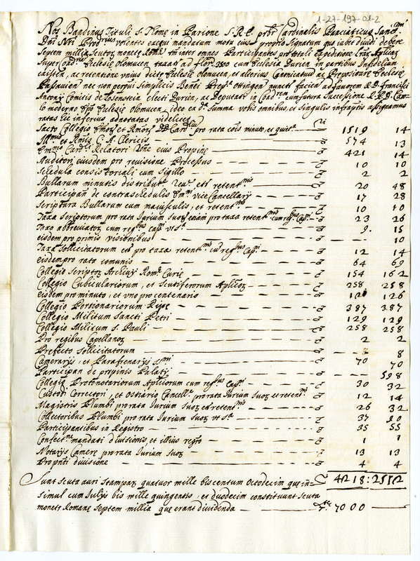 Mandato di esecuzione di un motu proprio del Papa a favore di don Francesco Antonio Conte di Losensteian (1690-1718)