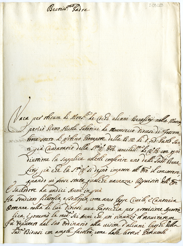 Lettera di Pietro Nicola Sabatini a Clemente XI (1700-1721)