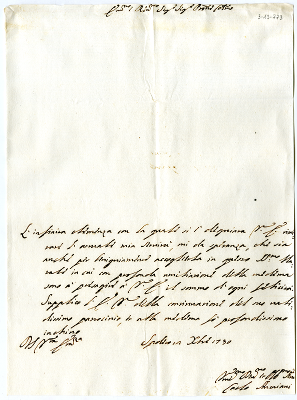 Lettera di Carlo Ancaiani al cardinale Annibale Albani (1730 dicembre 12)