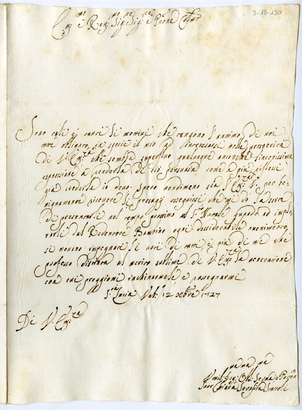 Lettera di suor Chiara Serafina Staccoli al cardinale Annibale Albani (1727 dicembre 12)
