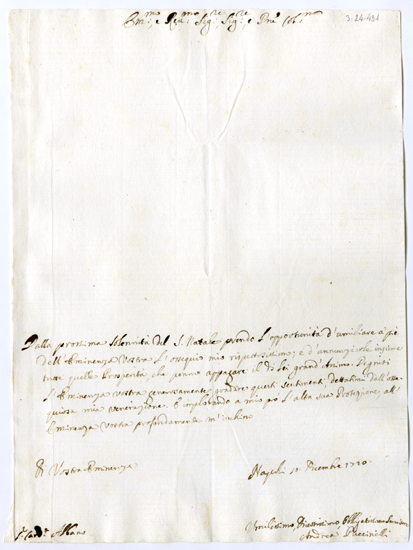 Lettera di Andrea Puccinelli al cardinale Annibale Albani (1720 dicembre 10)
