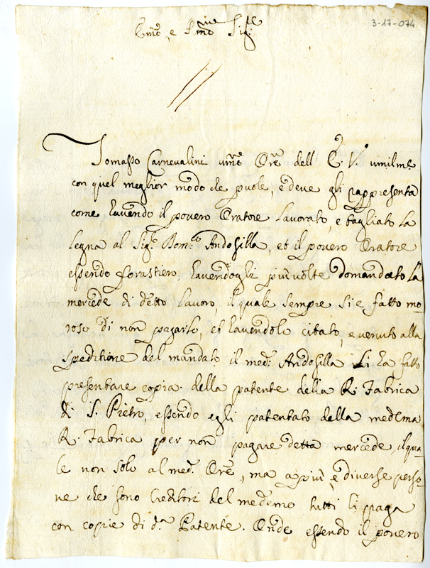Supplica il cardinale ad obbligare il signor Domenico Andosilla a pagare un lavoro di taglio di legna commissionatogli.
