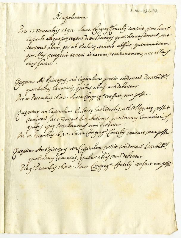 Memoria di suluzioni giuridiche sulle distribuzioni dei canonici non presenti in coro