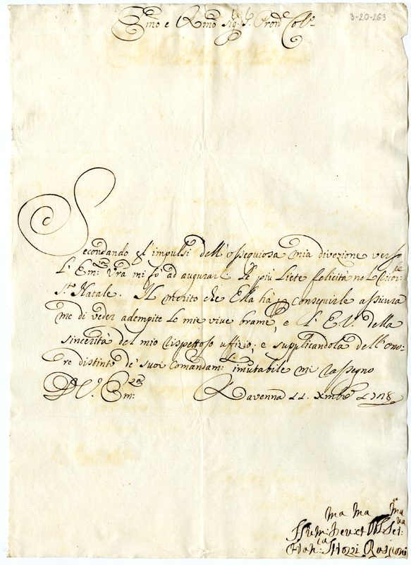 Lettera di Francesca Strozzi Rasponi al cardinale Annibale Albani (1728 dicembre 11)