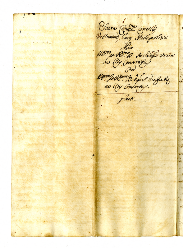 Sacra Congregatione Concilii Urbinatensis Iuris Metropolitici Pro Illustrissimo, et Reverendissimo D. Archiepiscopo Urbini ac litis Consortibus Contra Illustrissimi, et Reverendissimi D. Episcopum Eugubii ac litis Consortes. facti (1660-1680)