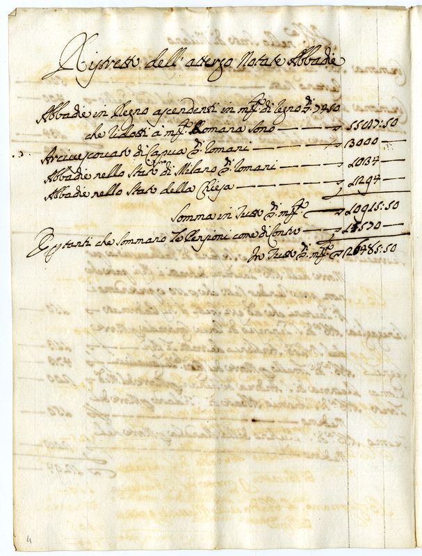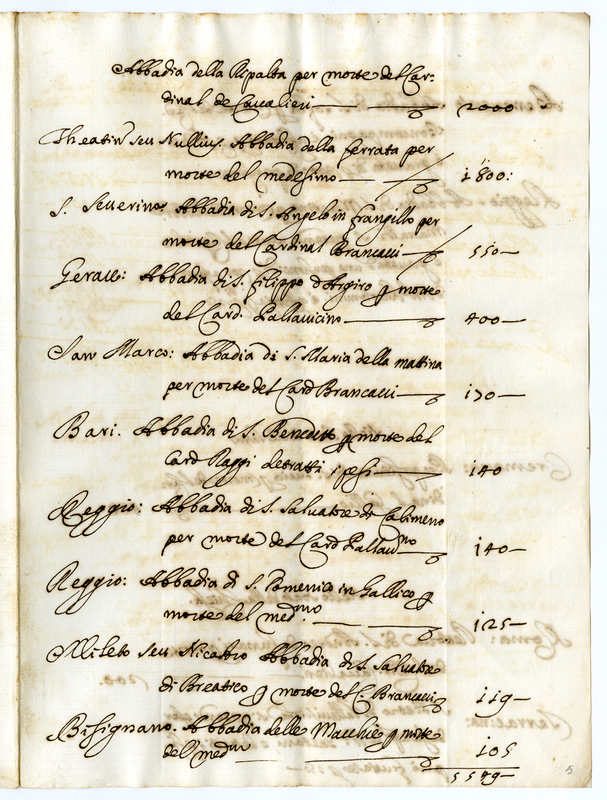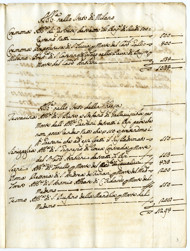 Abbadie e pensioni diverse da conferirsi che si trovano in Dataria a tutto agosto 1690 da scudi 100 in su