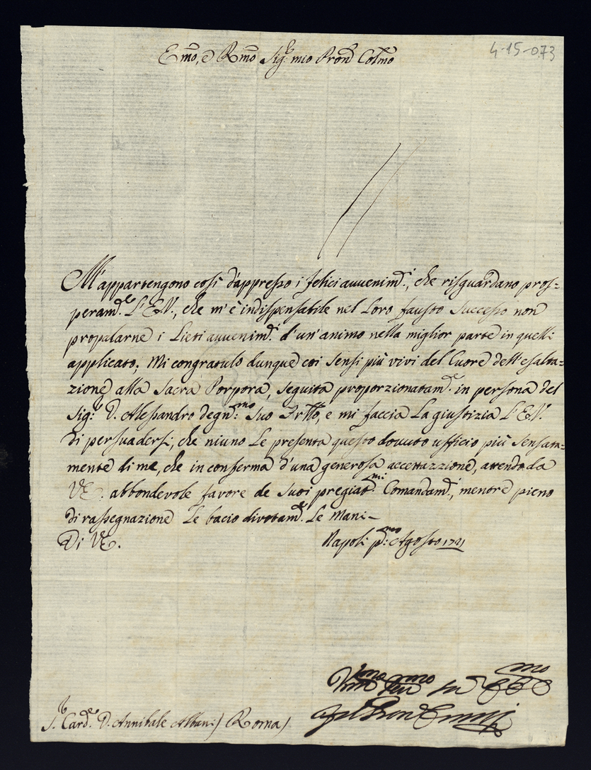 Lettere di congratulazione per l'esaltazione alla Porpora dell'eminentissimo cardinale Alessandro Albani