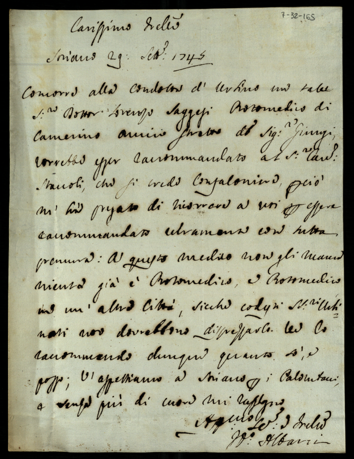 Lettere ricevute in Urbino dal signor Principe Don Orazio Albani ultimo di questo nome nell'anno 1745