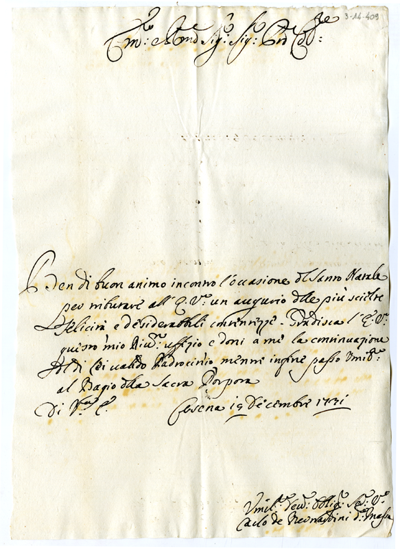 Lettera di Carlo de Bernardini della Massa al cardinale Annibale Albani (1731 dicembre 19)