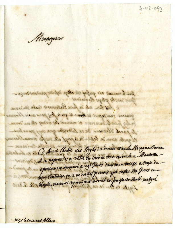 Dà l'avviso del suo arrivo a Marsiglia e dà notizie sulle vicende della contea di Nizza