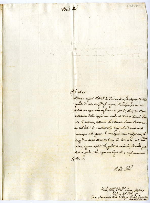 Lettera di fra Bernardo Maria di Gesù provinciale di Sicilia carmelitano scalzo a papa Clemente XI (1700-1721)