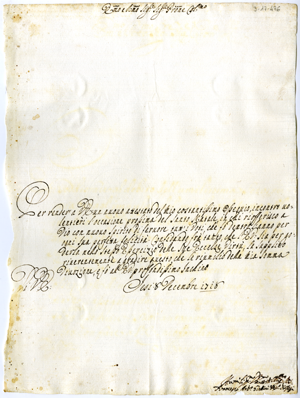 Lettera di Francesco Antonio Giattini vescovo di Jesi al cardinale Annibale Albani (1718 dicembre 8)