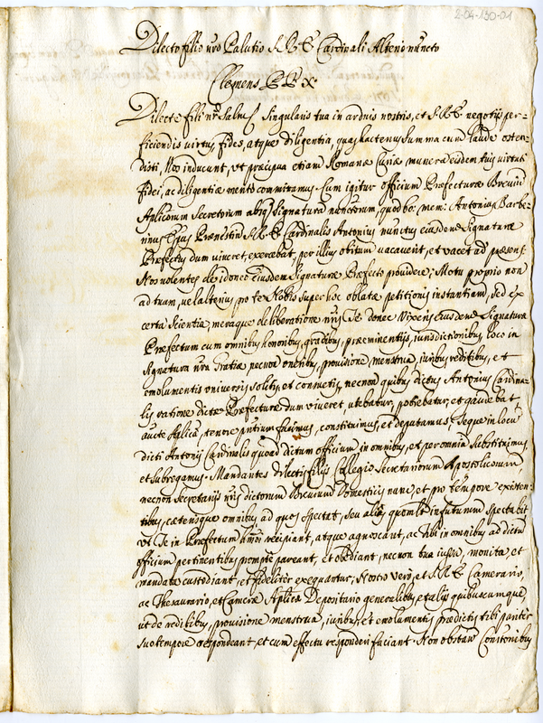 Lettera di Clemente X al cardinale Emilio Altieri (1671 agosto 8)