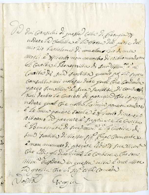 Essendo carcerato ingiustamente chiede al cardinale di interessarsi al suo caso.