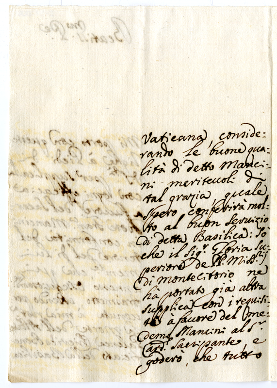 Raccomandazione a favore di Francesco Mancini per chiericato beneficiato della basilica vaticana vacante per morte dell'abate Palenca