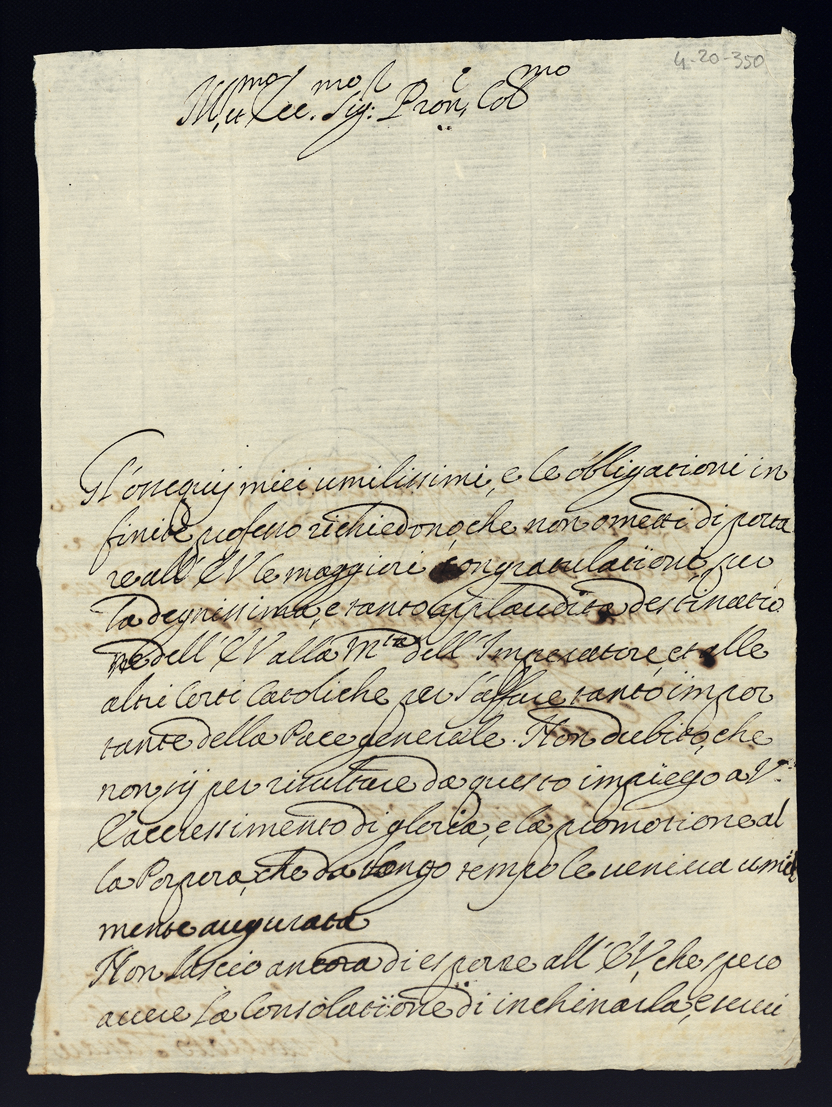 Lettere di congratulazioni per la deputazione di sua eccellenza in nunzio straordinario a Vienna