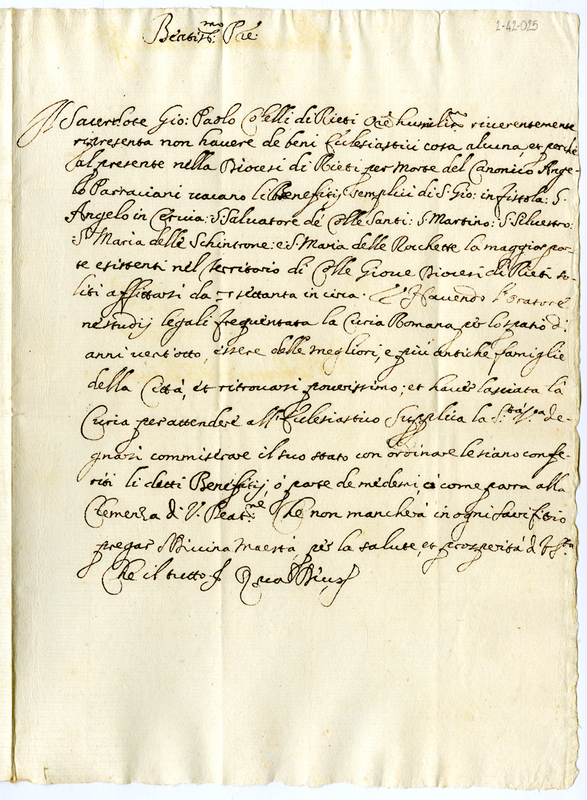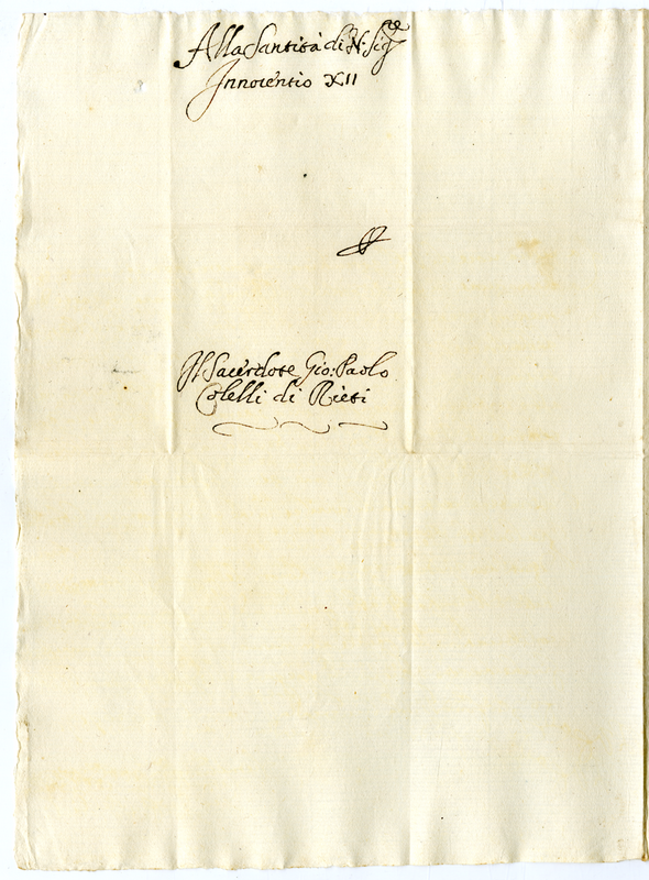Lettera di Giovanni Paolo Colelli a papa Innocenzo XII (1691-1700)