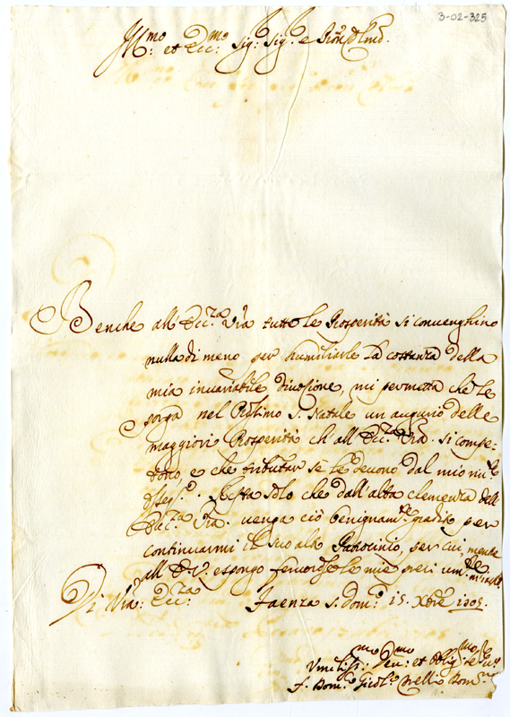 Lettera di Domenico Girolamo Corelli ad Annibale Albani (1705 dicembre 15)