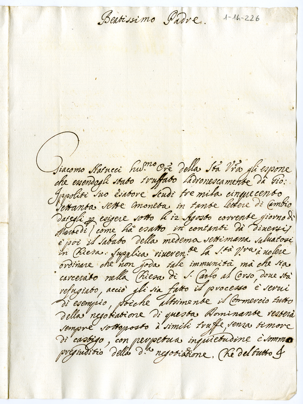 Supplica di Giacomo Natucci a Clemente XI