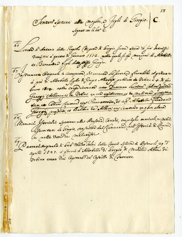 Scritture spettanti alla moglie, e figli di Giorgio Et alle cariche onorevoli, et impieghi del medesimo e del figlio Fascicolo C.