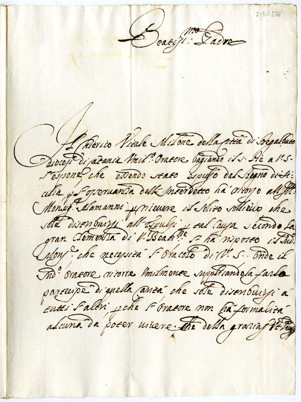 Lettera di Vitale Milone siciliano a papa Clemente XI (1700-1721)