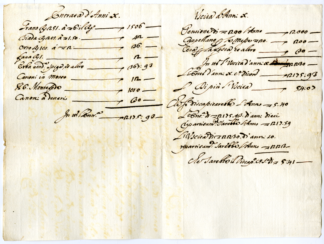 Prospetto delle entrate e delle uscite del benficio di San Sebastiano di Velletri (1691-1700)
