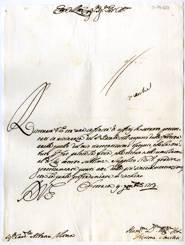 Lettera di Scipione Sacrati al cardinale Annibale Albani (1713 dicembre 9)