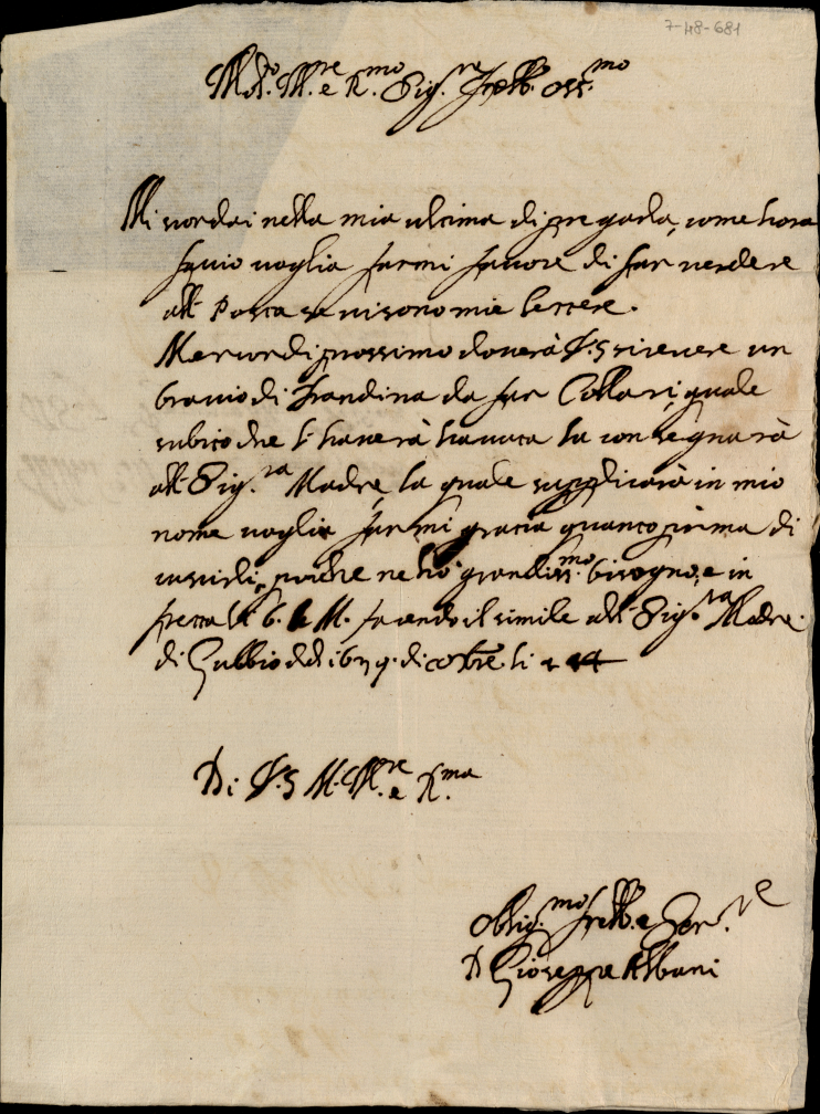 3. Lettere scritte al signor Orazio Albani nel tempo in cui era senatore di Roma