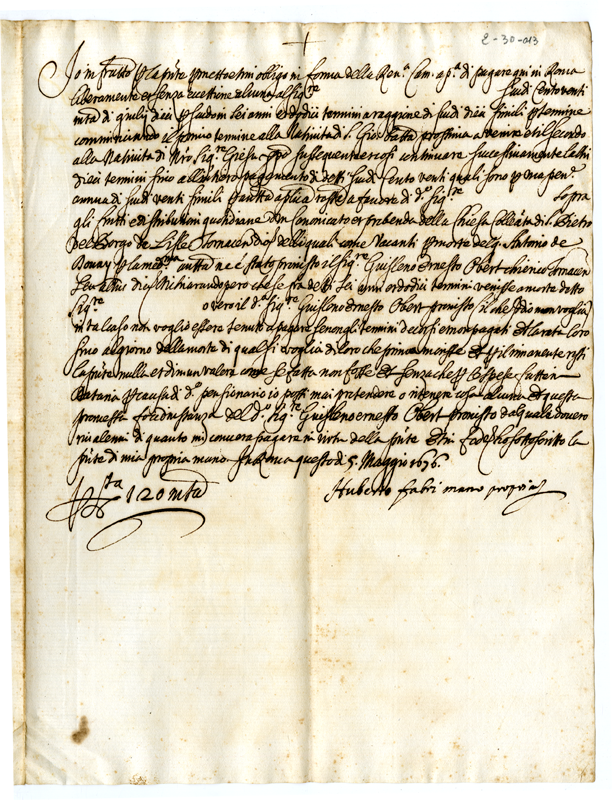 Dichiarazione di Uberto Fabbri di riconoscere alcune pensioni a favore di terzi (1676 gennaio 10)