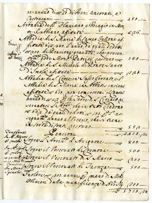 Abbadie, Priorati, Benefecii, e Pensioni che godeva la buona memoria del fu Signor Cardinale Negroni (1700-1721)