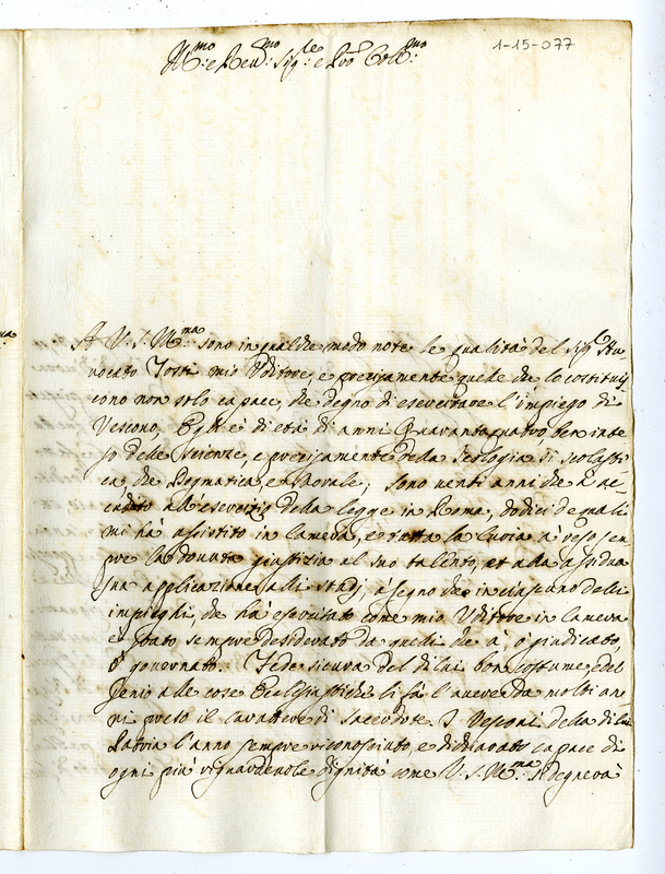 Lettera di raccomandazione a favore di Raffaele Tosti per l'assegnazione di un vescovato