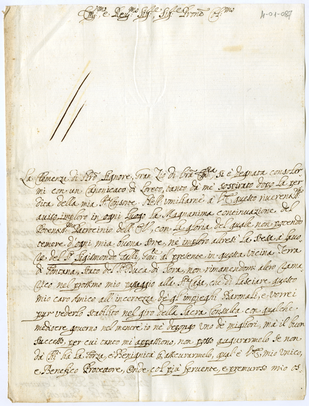 Lettera di Nicolò Bianchi al Cardinale Annibale Albani (1715 gennaio 26)