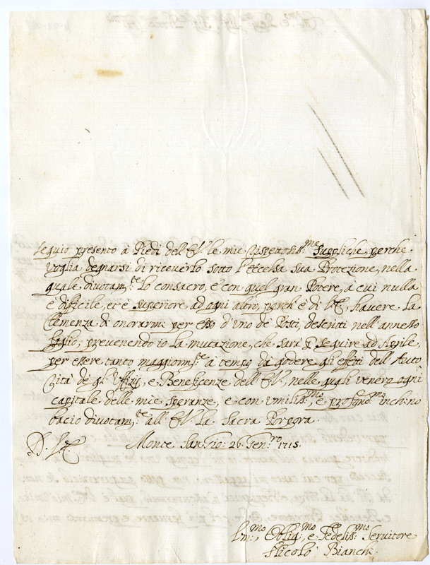 Lettera di Nicolò Bianchi al Cardinale Annibale Albani (1715 gennaio 26)