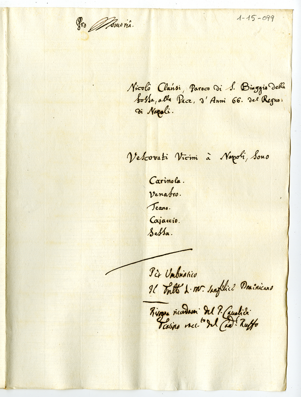 Pro memoria relativo alle chiese vacanti del regno di Napoli