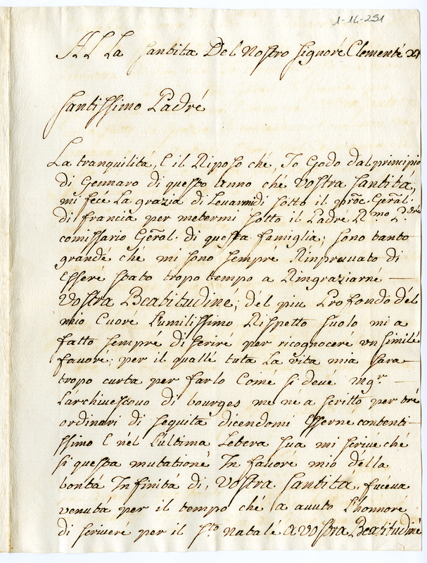Supplica di Anselmo Ruelle a Clemente XI