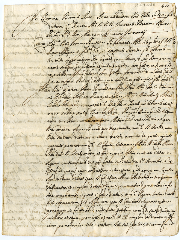Copia dell’atto di matrimonio tra Maria Bernardina Ondedei e Orazio Albani