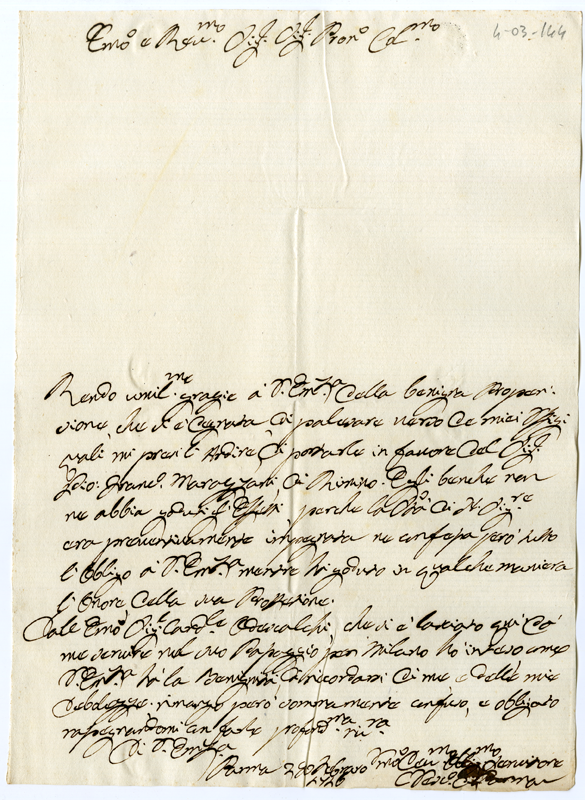 Lettera di Camillo Vescovo di Parma al Cardinale Annibale Albani (1716 febbraio 28)