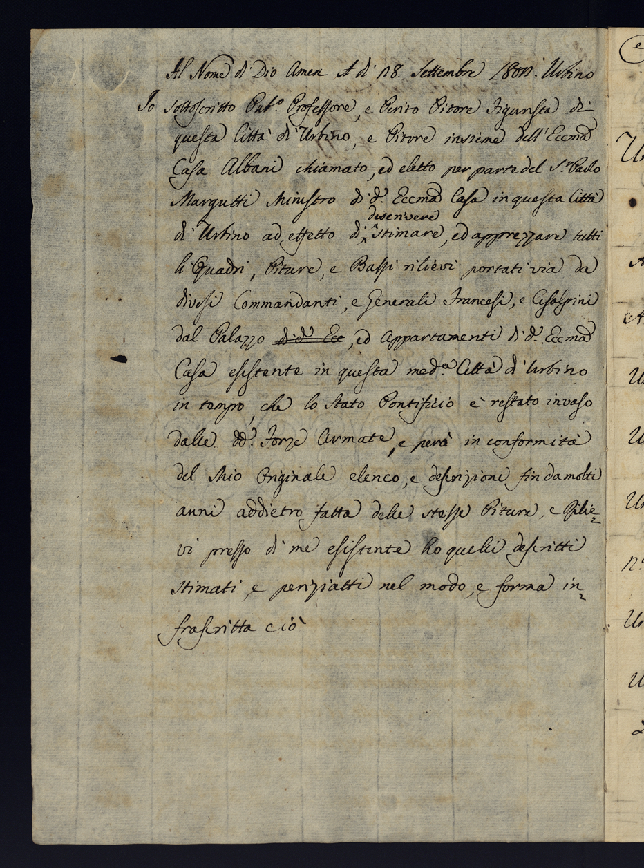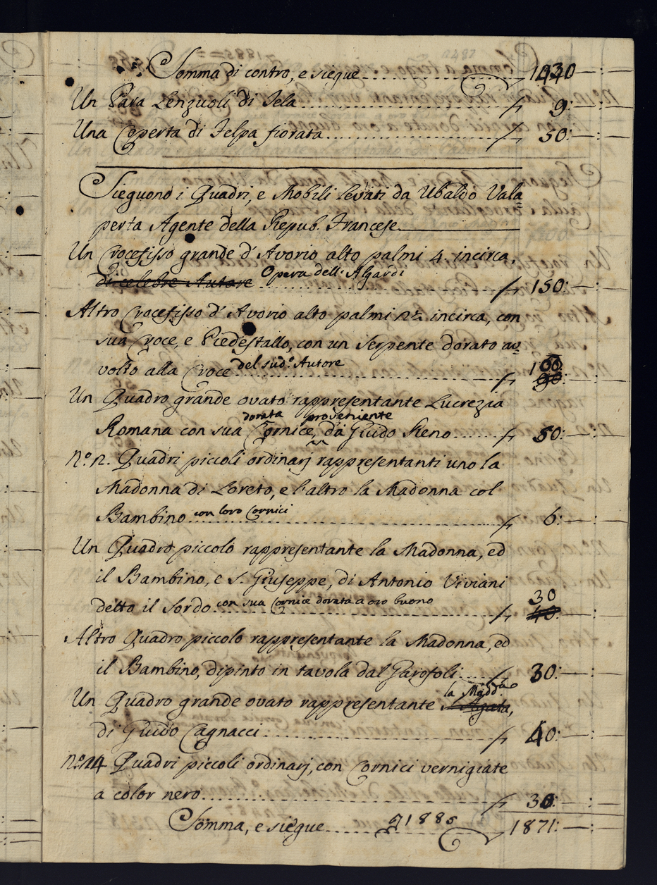 Note e stime dei beni sottratti alla Casa Albani durante l'invasione francese
