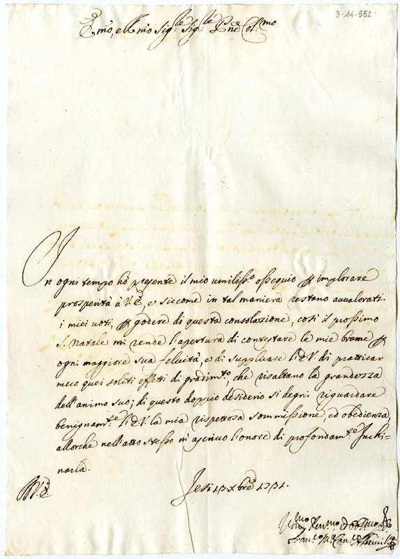 Lettera di Francesco Maria canonico Alberici al cardinale Annibale Albani (1731 dicembre 13)