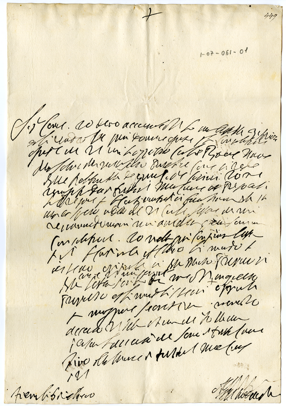 Lettera del granduca di Toscana Cosimo de Medici al cardinale Giovanni Francesco Albani (1700 settembre 6)
