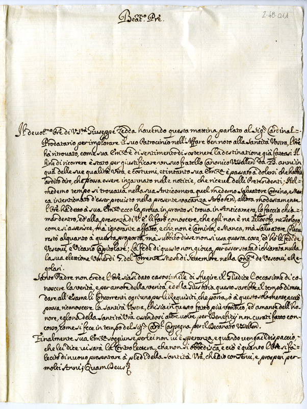 Lettera di Giuseppe Zedda a papa Clemente XI (1702)