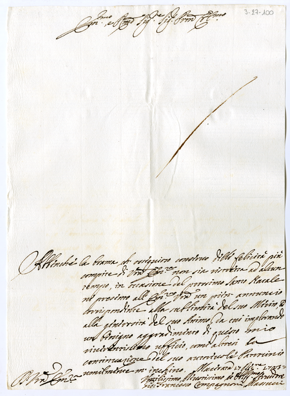 Lettera di Giovanni Francesco Compagnoni Massucci al cardinale Annibale Albani (1723 dicembre 17)