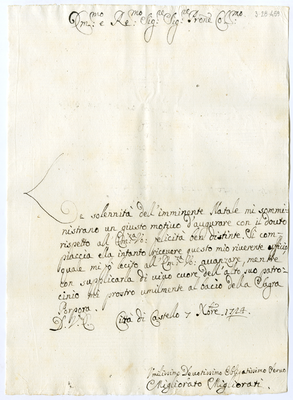 Lettera di Migliorato Migliorati al cardinale Annibale Albani (1724 dicembre 7)